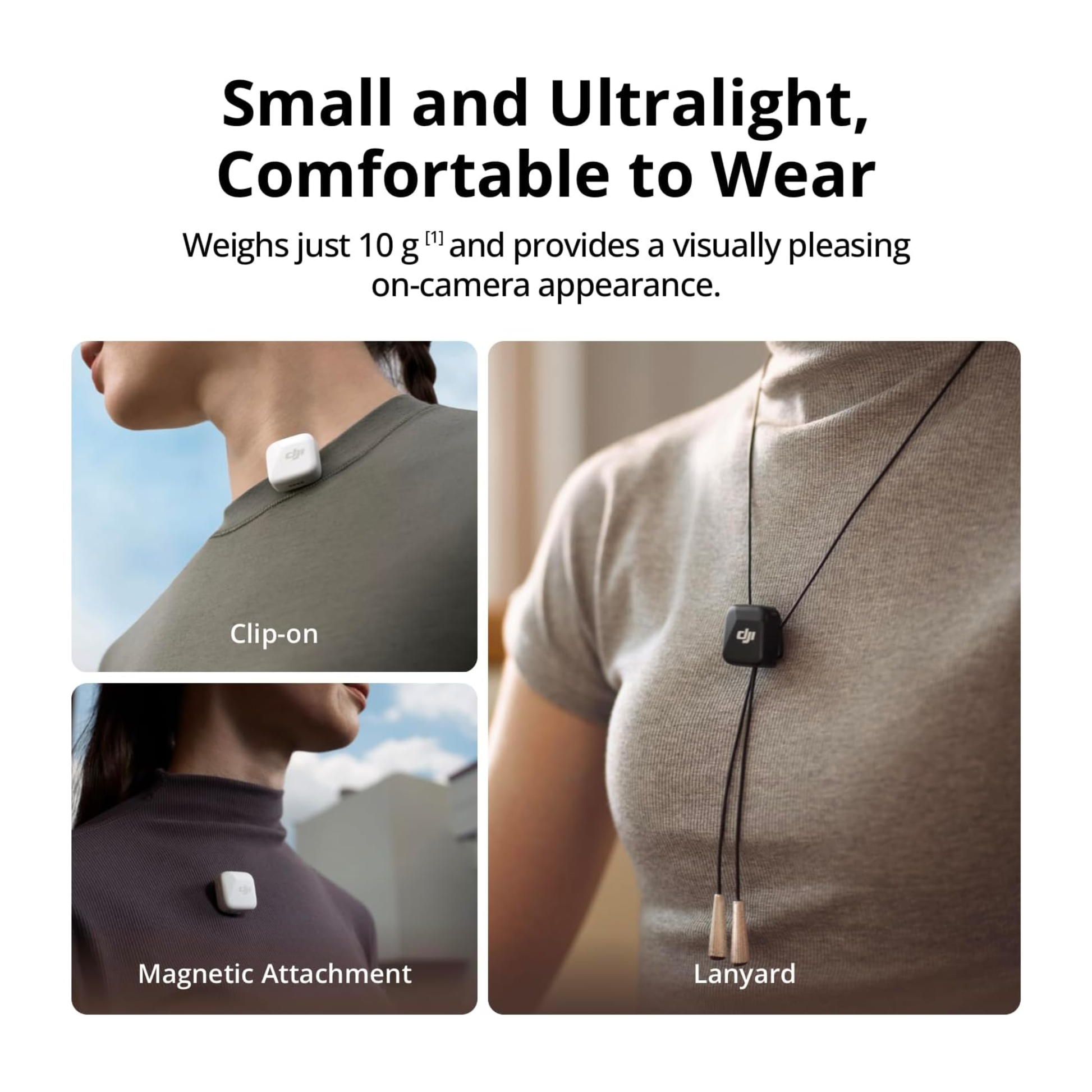 - Pequeño pero poderoso: el transmisor de micrófono DJI Mic Mini Lavalier es pequeño y ultraligero, pesa solo 0.35 oz, por lo que es cómodo de llevar, discreto y estéticamente agradable en la cámara.